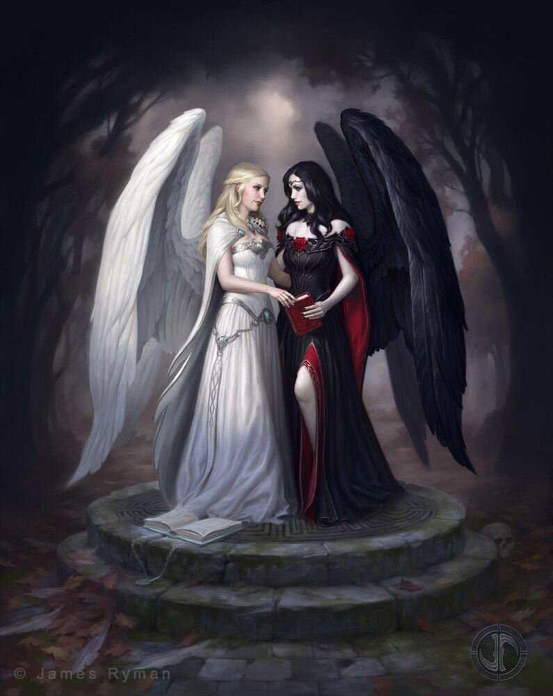 Повернувшись, они пошли в разные друг от друга стороны. Отдаляясь от толпы, обе становились как-будто прозрачнее. Наконец, блондинка легким облачком взмыла в небеса, а смуглянка растворилась в воздухе небольшим сгустком дыма.