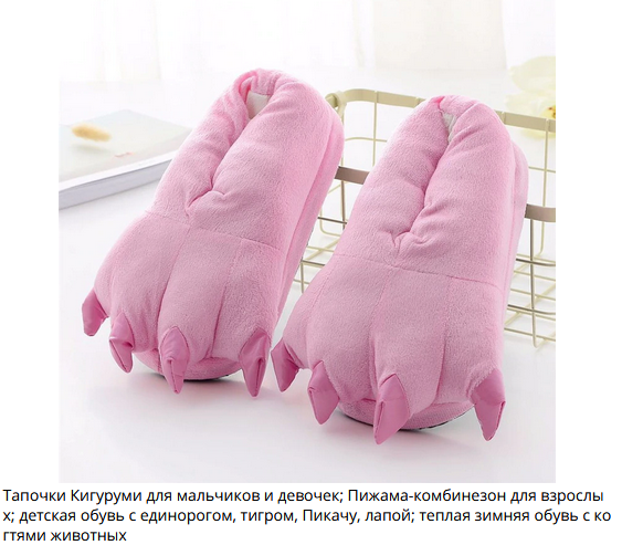 Любите ходить по дому в тапочках? Надоели свои скучные и серые тапули? Пора их поменять на другие, которые подарят хорошее настроение! В этой подборке 10 забавных, недорогих и забавных тапочек с алиэкспресса. А в конце, как всегда, бонус :) Поехали! 1. Лапки с когтями Когти сделаны из мягкой ткани, так что скрести по полу не будут. Стоимость - 450 руб. Ссылка. 2. Корги Плюшевые корги заставят вас улыбнуться с утра. Стоимость - 720 руб. Ссылка. 3. Рождественские Санта ходит по своему дому в таких же. Стоимость - 265 руб. Ссылка. 4. Эльфийские Обувь помощников Санты. С бубенчиками. Тихо ходить в них не получится, только весело. Стоят 580 руб. Ссылка. 5. Скучающие котики Котики, которые выражают утреннее настроение. Цена - 720 руб. Ссылка. 6. Акулы Голодные рыбки, которые будут пугать домашних любимцев. Цена - 740 руб. Ссылка. 7. Медвежья лапа Для любителей охоты и больших штуковин. Лапа с пластиковыми когтями. Стоимость - 740 руб. Ссылка. 8. Кабанчики Злой кабан поможет забодать противни