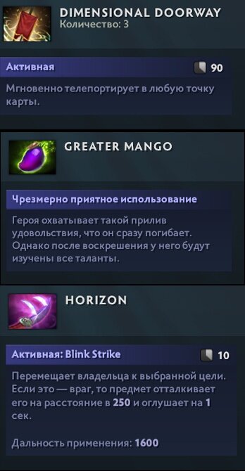 -item horizon Greater Mango При использовании с неиспользованными очками способностей они пропадают. Dimensional Doorway Работает как Blink Dagger, но без ограничений на использование после получения урона. Horizon У предмета 3 заряда, его нельзя использовать на курьера или под действием оцепенения. Неуязвимость к магии не препятствует перемещению к цели. Ранее эти предметы находили в API Доты до выхода обновления «Чужие земли», но они не вошли в патч.