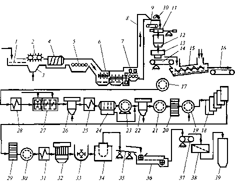 Рис.1 Машинно-аппаратурная схема линии производства сахара-песка из сахарной свеклы