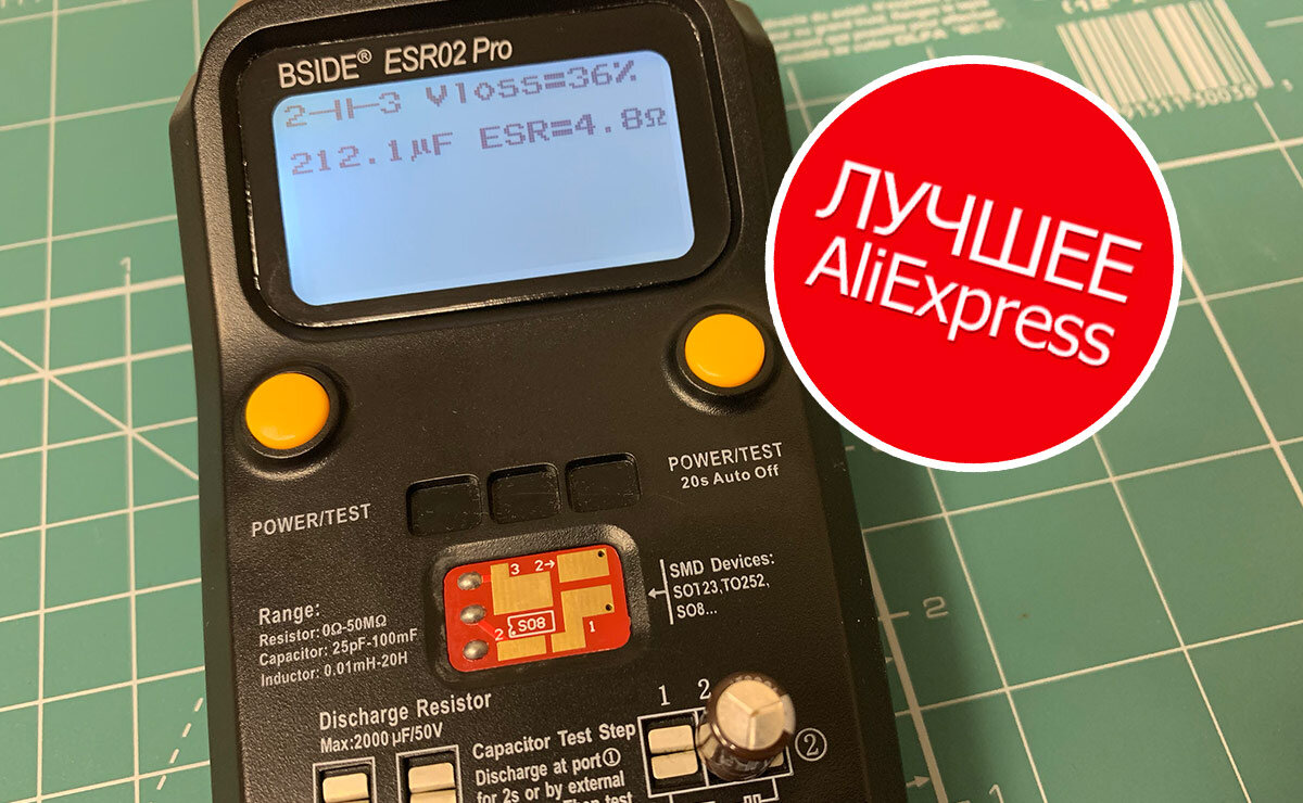 После этого случая приобрёл себе на AliExpress универсальный тестер компонентов BSIDE ESR02 PRO, с помощью которого можно измерять ESR и проверить практически любые ходовые радиодетали. На «Алишке» полно разнообразных моделей таких тестеров на любой вкус и кошелёк, есть даже наборы для самостоятельной сборки. В этот раз мне не хотелось заморачиваться с его изготовлением, потому приобрёл готовое устройство в нормальном корпусе.