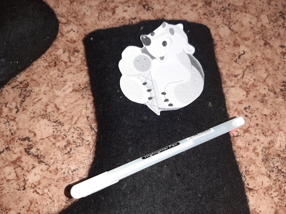 Купила сыну валенки, ему 5 лет. Думала как же мне их украсить, решила расписать. Дома нашлись обычные акриловые краски, белая гелиевая ручка, картинку я выбрала из детского мультика про Умку. Распечатала шаблон. Вырезала понравившийся элемент и обвила,остальное пришлось дорисовать от руки. Тонкой кистью и белой акриловой краской обвила все линии и закрасила все детали белым цветом, так как мишка белый. После высыхания первого слоя прошлась еще одним слоем и добавила голубоватый оттенок в тенях. Так как мишка держит в лапах мороженое его тоже прокрасила первым слоем белым,а за тем и цветными красками. Затем занялась мелкими деталями, такими как глазки,носик,лапки и мороженое. Все детали проработала мелкой кистью и черной краской. Снежинки ,блики на глазах и белая обводка это контур по ткани белый. Второй валенок сделала идентично так же как и первый, только решила в лапки ему вложить лимонад с соломинкой. Вот такие красивые и необычные валенки получились,ребенок просто в восторг