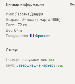 Лассана Диарра — французский футболист, играющий на позиции полузащитника. Профессиональная футбольная карьера Лассана началась во французском клубе «Гавр». После удачных выступлений за команду Диарра смог попасть в сборную Франции U-21, где его заметили скауты из «Челси». В июле 2005 года Лассана подписал контракт и перешел в «Челси». Несмотря на то, что Диарра не получил достаточно игровой практики, в сезоне-2005/06 его назвали лучшим молодым игроком команды. В дальнейшем футболистом заинтересовалось руководство клуба «Арсенал», который и выкупил его в 2007 году за 2 миллиона фунтов. В начале января 2008 года Лассана Диарра перешел в «Портсмут», заявив, что причиной его перехода является недостаточное количество практики в «Арсенале». Перейдя в «Портсмут», Лассана быстро стал игроком основного состава. Успешная игра французского футболиста заинтересовала руководство мадридского «Реала», и в середине декабря того же года они подписали контракт о переходе Диарра. Официальный переход