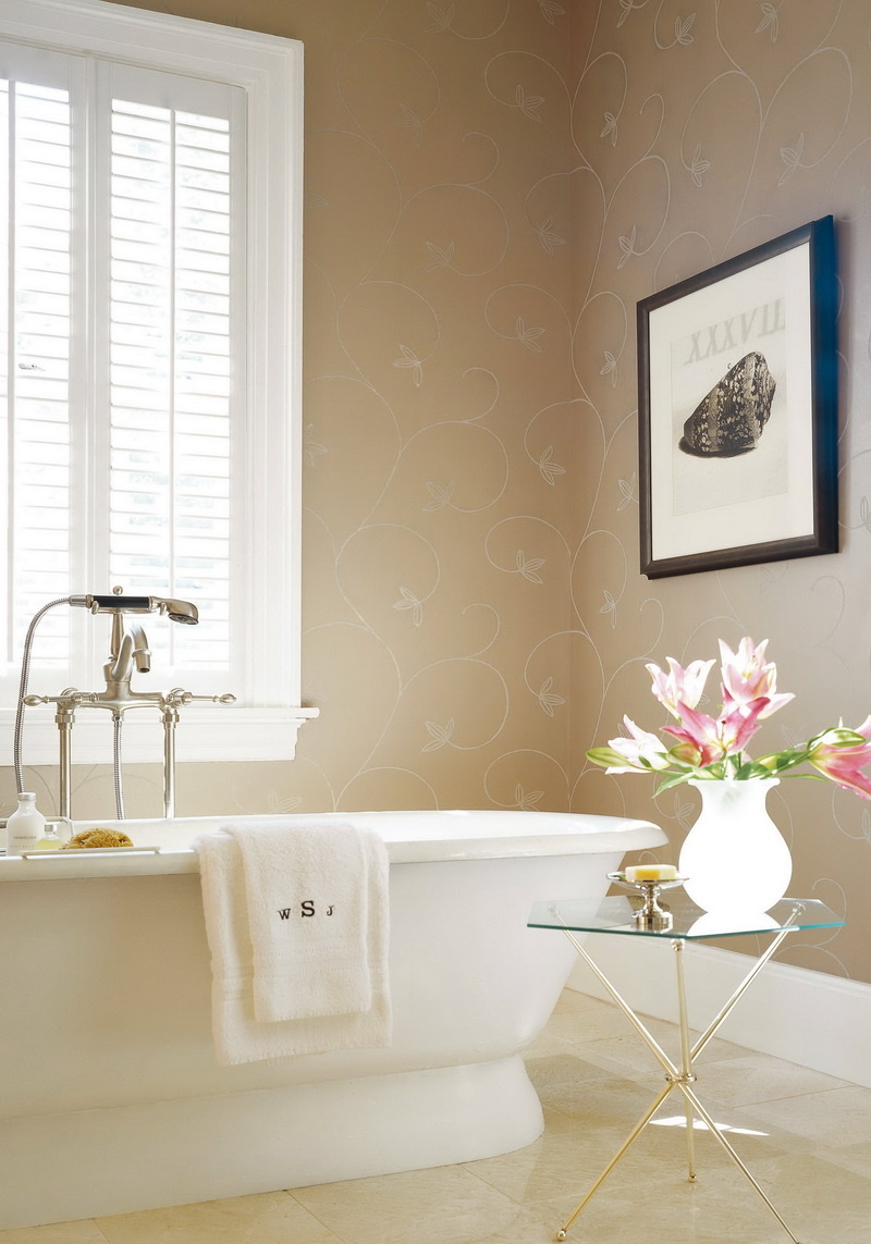 Традиционно стены в ванной облицовываются плиткой, панелями или окрашиваются. Но появление обоев, способных выдерживать сложную атмосферу этого помещения, сделало этот способ отделки популярным. У рулонных материалов много очевидных плюсов, одним из которых является простота монтажа. Ассортимент обоев, которые можно использовать в ванной комнате, обширный. Есть возможность реализовать любую творческую идею, создать привлекательный, комфортный дизайн. Преимущества использования обоев в ванной Достоинства керамической плитки известны всем. Она пользуется заслуженным высоким спросом, чаще всего используется для интерьеров ванных комнат. Однако есть несколько веских причин для выбора обоев в качестве настенной отделки. Главным преимуществом является нестандартность решения, что приветствуется современной модой. К плюсам обоев также относятся: Качественно уложить плитку, не имея соответствующей квалификации, опыта, практически невозможно. Приходится нанимать мастеров, что вызывает немалые