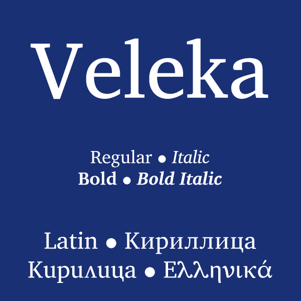 Мне хотелось быть рассказать вам о своей работе над шрифтом Veleka. Я управляю небольшим издательством, которое публикует в основном филологические исследования. Часто необходимо собрать в одной книге исследования разных авторов в таких областях, как древнеславянский язык, диалектология или, в более широком смысле, лингвистика. В таких случаях каждый автор по-своему решает вопрос об использовании шрифта со всеми буквами, необходимыми для публикации. Но когда дело доходит до лингвистики, оказывается, что не существует шрифта, который бы полностью соответствовал требованиям каждого лингвиста и издателя и даже имел бы бесплатную лицензию. Поэтому я решил создать один. Так родилась идея шрифта Veleka. Не нужно начинать с нуля, чтобы создать такой огромный проект. В качестве основы для шрифта Veleka я выбрал шрифт Charis SIL. Он лицензируется по SIL, что позволяет создавать производные. На первом этапе работы я добавил недостающие греческие буквы в Charis SIL, а также типичные болгарские, с