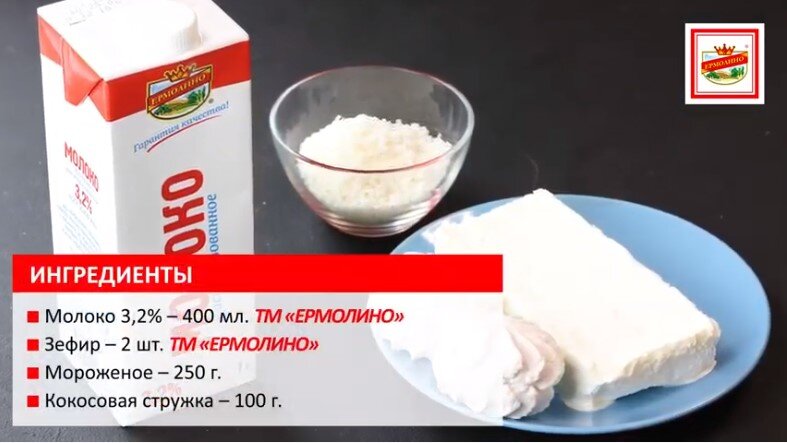 Вам понадобится минимум продуктов. Самый главный ингредиент - вкусное молоко ТМ "ЕРМОЛИНО".