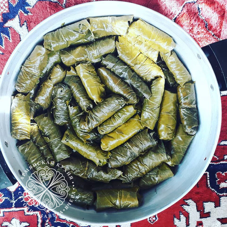 ТОЛМА В ВИНОГРАДНЫХ ЛИСТЬЯХ С удивлением обнаружила, что самого популярного рецепта толмы у меня нет) Непорядок, тем более что я готовлю ее хотя бы раз-два в месяц. Исправляемся и начинаем с самого начала. Для толмы в виноградных листьях, конечно же, нужны виноградные листья. В идеале сорванные в собственном винограднике весной или в начале лета, когда листья еще нежные-нежные с тончайшими прожилками. Ошпаришь такие листья разочек и всё, готовы к употреблению. Если виноградников нет, то покупаем листочки в магазине или на рынке, если не заготовили их сами. Нам надо несколько раз тщательно промыть листья, если они хранились в соленом растворе. Лучше всего их залить водой и оставить на некоторое время, а сами за это время приготовим фарш. Сколько хозяек, столько и рецептов фарша J Самая лучшая толма- это, конечно, мамина) Напишу наш рецепт, а вы в комментариях добавьте, пожалуйста, свой. Отделить мясо(говядину, баранину) от костей, пропустить через мясорубку. Традиционно мясо для