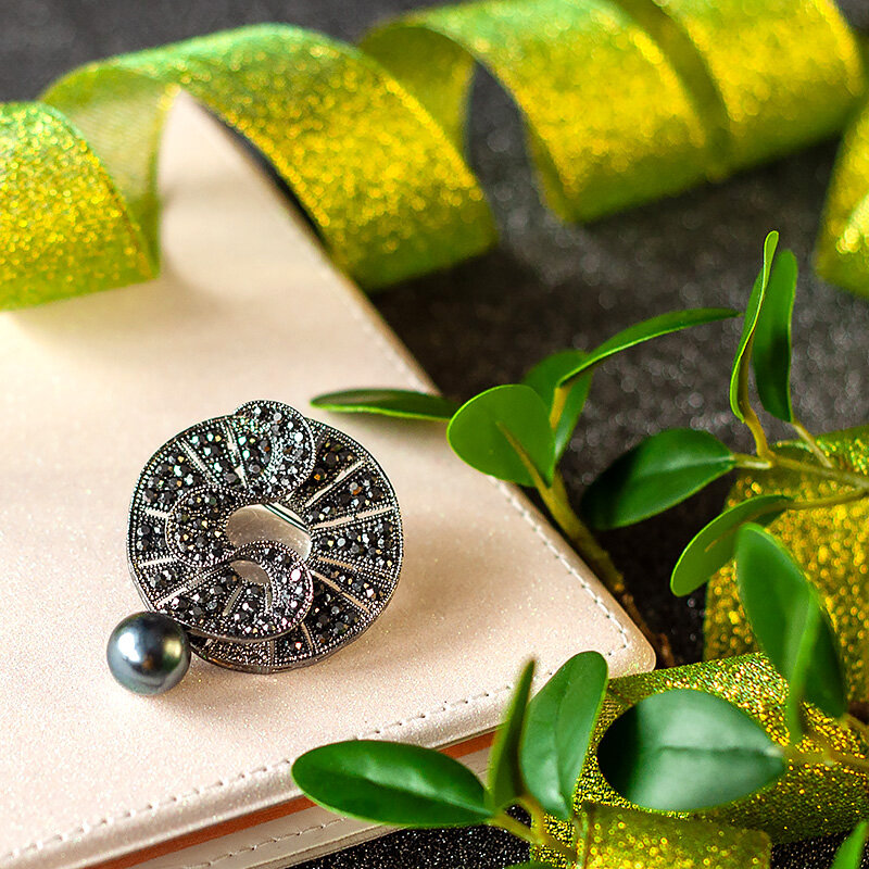 Размер всей брошки оптимальный: диаметр 4 см, в длину вместе с жемчужинкой – 5 см.