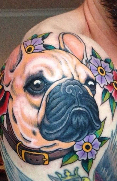 Татуировка в виде собаки породы бульдог выглядит довольно ярко и необычно. Пес на тату может быть стилизован как персонаж мультфильма или быть абсолютно реалистичным. Это может быть английский, американский или французский бульдог. В любом случае собака смотрится как надежный и верный союзник своего хозяина. Учитывая такое разнообразие типов рисунка, значение татуировки бульдог может быть разным. Тату в виде английского бульдога делают люди желающие показать свою причастность к английскому наследию. В этом случае вместе с собакой на татуировке может быть английский флаг или герб. Татуировка бульдога в США является символом морской пехоты. В остальных странах изображение бульдога символизирует: терпение, мужественность, стойкость, постоянство, семью, бесстрашие, защита, упорство. А так же рисунок бульдога может быть символом спортивной команды. Внимательно изучите рисунок, прежде чем наносить его на тело и не спешите с выбором. Такая татуировка может быть как вашим надежным другом и з