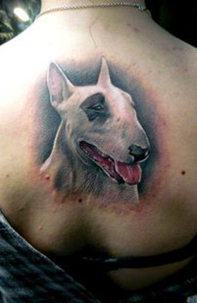 Изображения бультерьеров популярны в европейской тату-культуре. В портфолио мастеров чаще всего имеются три вида татуировок с изображениями собак этой породы: реалистичные, мультяшечные бультерьеры и стилизованные изображения булей. Реалистичное тату бультерьера – это память или дань симпатии и уважения к домашнему питомцу. Тату может быть профессиональной, если ее делают заводчики этой породы. Бультерьеры – герои мультфильмов и комиксов, изображенные на татуировке, не имеют глубокой символики и свидетельствуют скорее о веселом и ироничном нраве своего владельца. Стилизованные тату пса этой породы могут быть устрашающими (шипованный ошейник, оскал, боевая стойка), в этом случае они символизируют потенциальную агрессию, силу и готовность дать жесткий отпор. Бультерьеры известны своей мертвой хваткой, это же качество ассоциируется с обладателем такой татуировки: он бесстрашный боец. В современной тату-культуре значение татуировки бультерьер таково: отвага, упорство, выносливость, верно