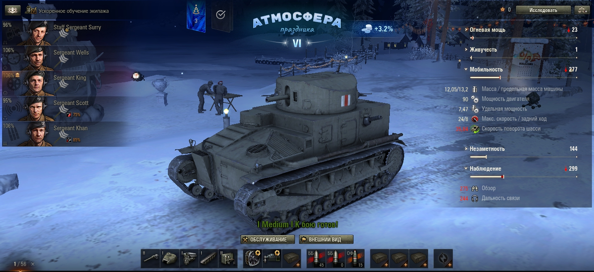 Виккерс Медиум Мк1. На топовой 57мм пушке. Вспомнил, что когда то зажигал на этом танке, полностью загруженном фугасами. При пробое 29мм, они выносят практически любой танк первого левела на 90-95 хп. При этом пушка точнее стоковой, хотя круг сведения как-бы больше. Тем не менее танк остаётся медленным сараем, с тонкой кожей и легко впитывающий урон.