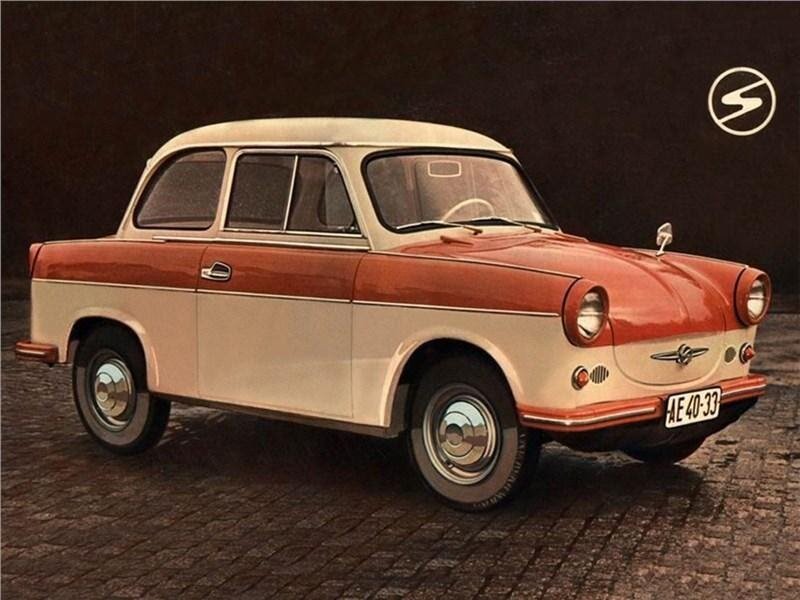 При недостаточном количестве ресурсов для создания новых автомобилей, послевоенные модели имели большой спрос. И только в 1957 году удалось создать поистине новое авто, получившее своё название – Trabant. Трабантами считали охраной важных личностей, а чуть позже это слово приобрело новое значение - спутник. Вернер Ланг – это человек, который стал главным за разработку автомобиля и его постановку на конвейер. Группа разработчиков под его руководством, решили, что эта машина должна стать лучше, чем появившийся в то время Жук Volkswagen. Поэтому в производстве Trabant, использовались материалы, которые считались одними из самых новых. Кузовные панели и авто, делали из высококачественной пластмассы, так как она меньше по стоимости метала, поэтому машине устанавливали очень демократичную цену. Двухтактный двигатель с объёмом 499 куб.см заправлялся бензином и маслом, совмещенных в равных количествах. А расположение двигателя, было поперек кузова, что позволяло использовать передний привод,