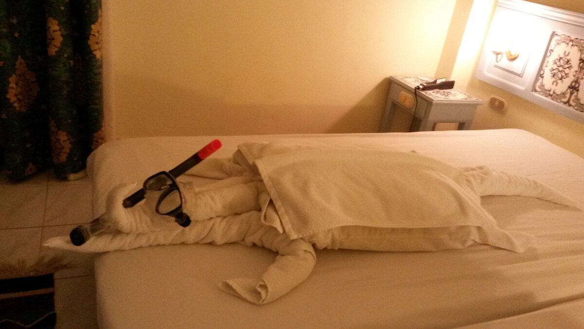 Также, каждый раз после возвращения из пляжа нас ожидал убранный номер с приятным сюрпризом: Еда, кстати была тоже "привычной". Нам было вкусно (не знаю, почему многие так жалуются на еду, может нам повезло с отелем больше): Вообщ