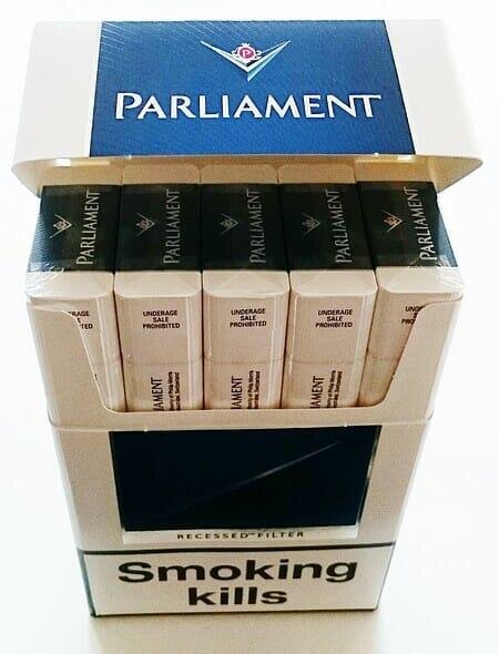 Aqua blue Сигареты Парламент Aqua blue выпускаются в стандартной упаковке, которая оформлена в синем и белом цвете. В каждой пачке содержится 20 сигарет, содержание никотина достигает 0,4 мг, а смолы примерно 5 мг в сигарете. При курении чувствуется запах дыма без примесей, при этом отмечается плотная забивка табака. Подобный вариант отлично подойдёт как для новичков, так и для опытных курильщиков. Стоимость сигарет в России составляет примерно 160-170 рублей. Стоит парламент дорого, но это оправдывает качество продукции. Night blue Данный вариант выпускается в стильной и прочной упаковке из картона. На пачке белого цвета имеется блестящий прямоугольник тёмно-синего цвета и надпись бренда. В пачке содержится 20 сигарет, которые отличаются хорошим качеством и фирменным стилем. В процессе курения отмечается хорошая забивка табака и приятный аромат. Никотин составляет 0,5 мг, а количество смолы увеличено до 8 мг. У данной версии парламент цена за пачку составляет примерно 170-180 рубле