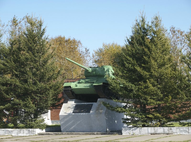 Данный танк до 1985 года выполнял роль тягача на одном предприятии и к 50-летию победы его частично восстановили и воздвигли на пьедестал.