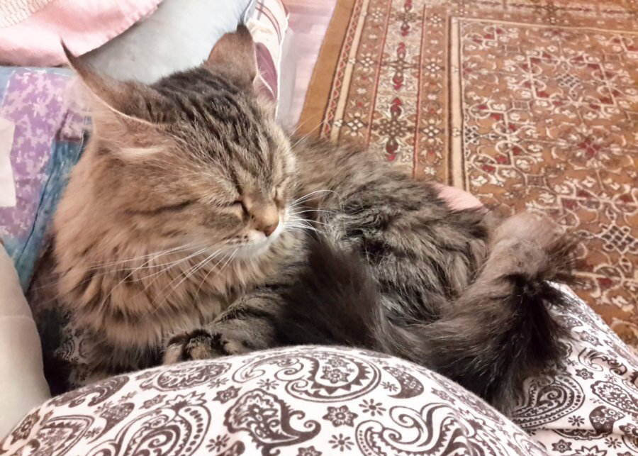 Так получилось, что от прошлого брака мне осталась кошка Пенелопа сибирской породы с очень своенравным характером. Она всегда признавала только одного хозяина – моего бывшего мужа. Когда мы развелись, он сказал, что кошка ему не нужна и ушел – Пенелопа несколько дней ничего не ела и только через месяц далась мне в руки. С тех пор она, мало-помалу, стала моим верным другом и охранником – при ней ко мне подходить, а уж тем более прикасаться, никто не имел права. Спала она исключительно со мной, я брала ее во все поездки и рабочие командировки, т. к. оставить животное было не с кем. Шло время, я встретила родного человека (к слову, Пенелопа к нему отнеслась, на удивление, хорошо). Мы поженились и я забеременела. Кошка ни на минуту не отходила от меня всю беременность. Если малышка начинала сильно толкаться в животе, то Пепа (как мы ласково ее называем) ложилась рядом, обнимала лапками животик и начинала мурчать, словно маленький тракторенок. Однажды я сильно заболела, находясь на 7-м