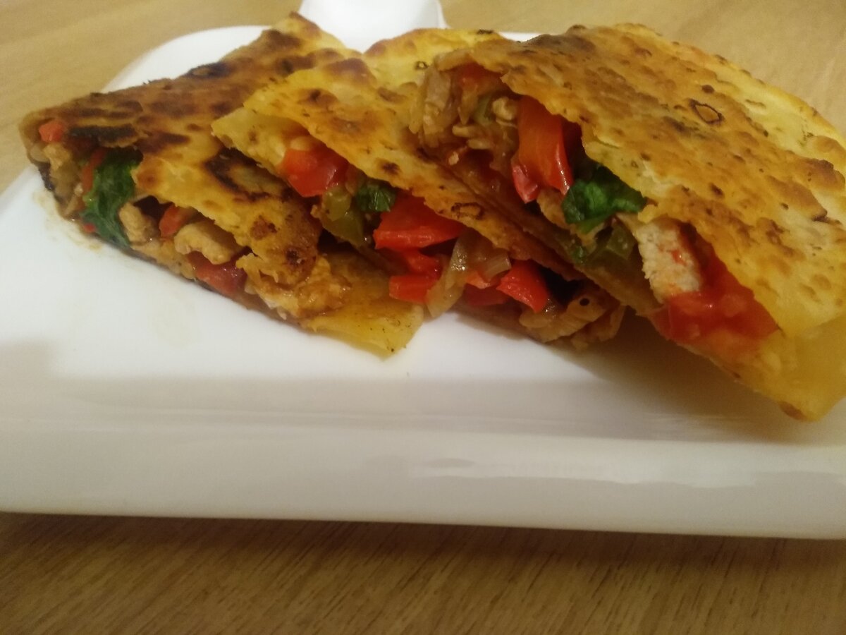 Кесадилья с курицей, сливочным сыром и соусом BBQ