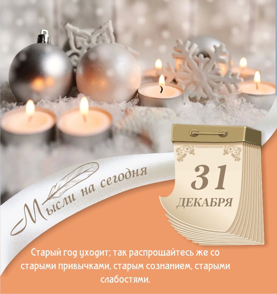 1 декабря Старый год уходит; так распрощайтесь же со старыми привычками, старым сознанием, старыми слабостями. Мысль дня. Подпишитесь и соберите всю коллекцию.