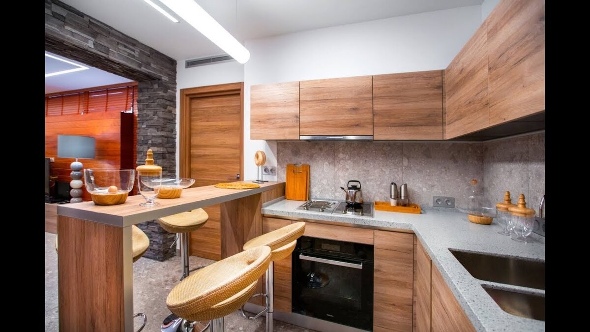 Кухня в современной квартире – это не просто место для готовки. За обеденным столом в этом помещении встречаются все члены семьи, принимают гостей. Поэтому сегодня особое внимание во время ремонта уделяют оформлению кухни. Фото интерьеров и оригинальные идеи дизайна можно найти в статье. Подсветка Процесс готовки нередко приходится на темное время суток, поэтому качественное освещение имеет немаловажное значение. Подсветка помимо своей основной функции выполняет еще и роль декора, создает в помещении уютную атмосферу. Простое решение – продумать во время ремонта яркое освещение в основной зоне и более интимный вариант - небольшие светильники или подсветку для ужина в уютной обстановке. Современные технологии позволяют выбрать источник света с диммером, регулятором мощности. Есть также яркие светильники, которые регулируются по высоте. Оригинальные яркие источники света можно сделать своими руками из простых материалов, например, красиво смотрится банка необычной формы или простые гирля