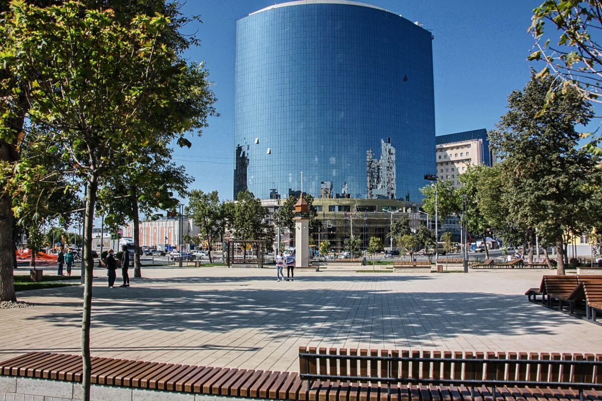 Изменения затронули и Крымскую площадь. На территории разместили арт-объекты, напоминающие о Крыме, — маяк, ротонду, а также сухой фонтан и мозаичное панно в виде карты полуострова. В зеленой зоне обновили дорожки и газоны, установили новые лавочки, смонтировали автополив и систему освещения.