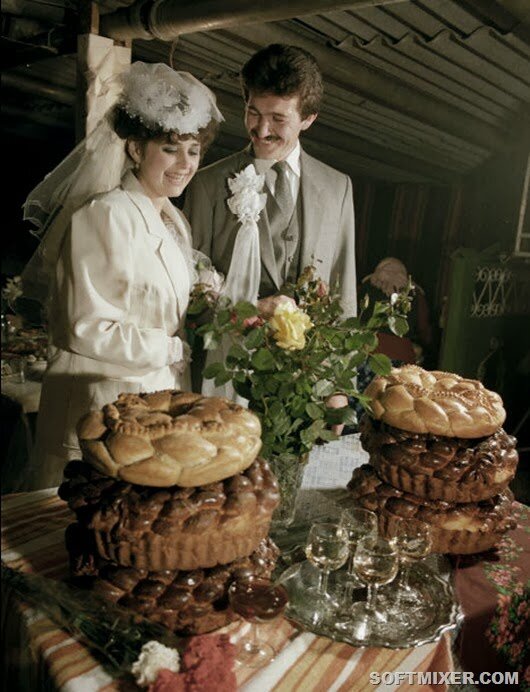 В древности такого блюда как «торт» не существовало, его заменял свадебный хлеб. К примеру, в Древнем Риме хлеб выпекали из ячменной или пшеничной муки. Его не просто разделяли на кусочки, а разламывали прямо над головой невесты: при этом каждый гость получал свою порцию, а жених собирал и съедал крошки с головы любимой. На Руси свадебным обрядовым хлебом считался каравай. Форма праздничного хлеба – обязательно круглая, это символ Солнца. Украшают каравай по традиции ветками калины, колосьями пшеницы, ржи. До сих пор существует поверье, что тот, кто из молодых откусит от каравая больший кусок, будет хозяином в доме. В Англии свадебный пирог был заменен грудой маленьких сладких булочек, над которыми молодые обязательно должны были поцеловаться, подтверждая свое решение жить вместе и в горе, и в радости. Впервые такое блюдо как «торт» появилось во второй половине 17 столетия. Его автором стал французский кондитер, приехавший по делам в Лондон: он побывал на свадьбе и был удивлен,