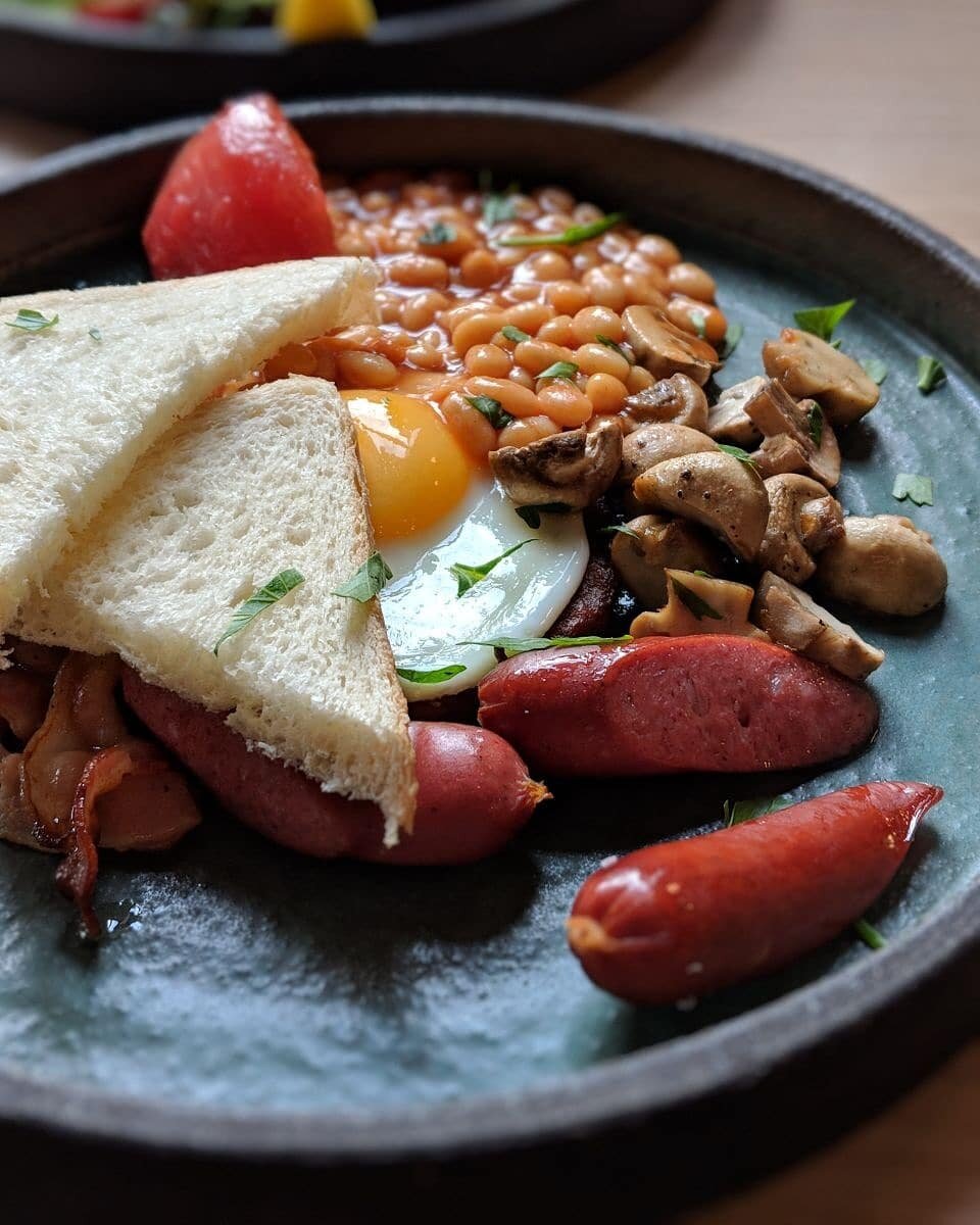 Расскажу о местах, где можно на #завтрак съесть блюдо с названием "Английский завтрак" #english breakfast Почему он так называется и каков состав такого завтрака? В истории и традициях английского общества говорится, что это блюдо появилось в начале XIX века. Помещики плотно ели утром перед охотой. Ведь энергии гоняться за зайцами нужно много. Позднее другие слои населения взяли в привычку поглощать утром калорийную поджарку. Ведь это отличное начало тяжелого напряженного дня. В простонародье также знаменито название fry up. Английский завтрак это мега калорийное блюдо полное холестерина. Из названия понятно, что оно жареное. Жареная колбаска, бекон, фасоль в томатном соусе, жареный помидор и тосты. Это стандартный состав продуктов. В зависимости от страны будут меняться ингредиенты. Дополнительно могут положить грибы и какой-нибудь лист салата. А от стоимости блюда, будет меняться качество. Цвет, желтка, сухость колбаски и т.д. Есть люди, которые по кофе оценивают заведение, так же