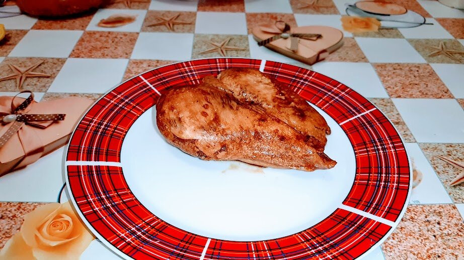 И перемешиваем до однородности Выливаем соус с водой на сковороду Накрываем крышкой и тушим на среднем огне 15 минут Наша вкусная грудка готова, можно подавать на стол.