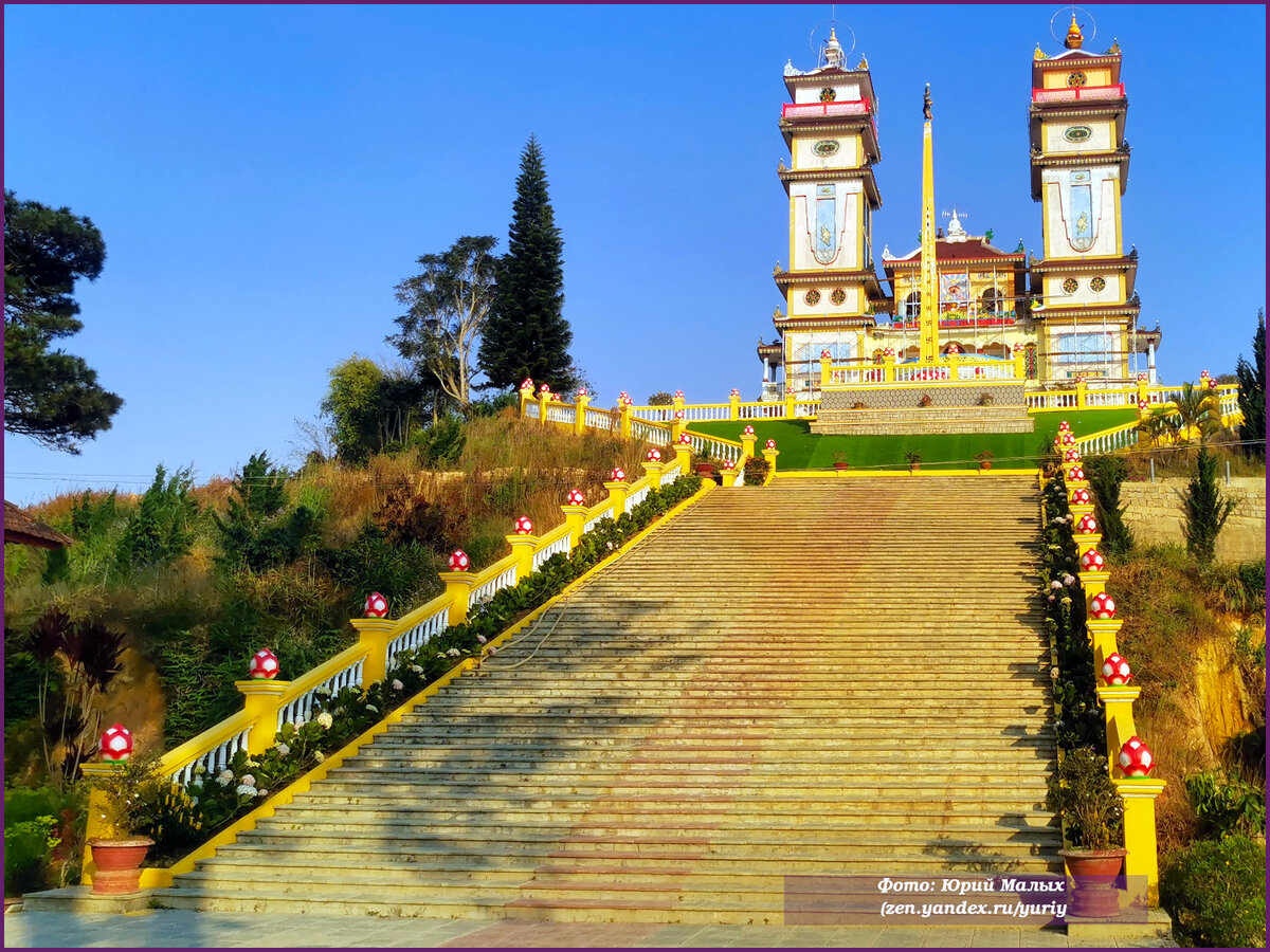 Если бы я сам увидел такой заголовок, подумал бы, что автор, наверное, что-то не то съел... или скурил. Поверить в существование конфессии, где Ленин - ярый борец с религией - числится пророком, очень сложно. Но она есть! И есть храм этой религии. Я в него сходил. Хочу сказать, там все очень круто, не какая-нибудь мелкая секта. Сейчас я вам покажу и расскажу, что это за религия такая, и кого еще там причислили к лику святых, помимо Ленина и Толстого - список просто шикарный. Итак, знакомьтесь: храм религии Као Дай, Далат, Вьетнам. Рассказ про Као Дай стоит начать с того, что это официально принятая и разрешенная государством религия. Причем государством социалистическим, где религия, как вы понимаете, не особенно в почете. Она насчитывает порядка 3.000.000 последователей, в основном это жители Вьетнама и США. Не буду вдаваться в теорию Као Дай. Скажу только, что в свою "библию" они умело вплели большинство святых и божеств из более распространенных религий. И Будда, и Адам, и Иисус у