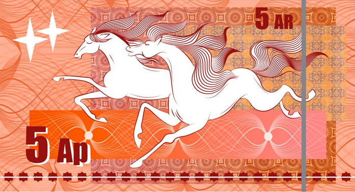Итак друзья, мы продолжаем разговор о потенциальной валюте Новой России (государство РИАМ). Название ее, как вы уже знаете "Ар", от "Аргентум" и "Аурум", а также единицы измерения площади земельных участков - "Ар". Теперь следует обсудить обозначение национальной денежной единицы. Попробуйте его на вкус. Распишите несколько раз на листке бумаги Буква "А" совмещена с "Р", всего три удобных в написании от руки линии. Значок устойчив. У него две "ножки", в отличии от перекособоченного современного обозначения рубля. Кривая линия напоминает, держащийся на мачте корабля, раздутый парус. Это - к деньгам и процветанию. Попробуем еще. Может быть, центральную линию следует выпрямить строго горизонтально? Вот такой получился прописной кораблик-ладья. И, как теперь это будет сочетаться с цифрами? Вроде бы неплохо. Теперь вспомним о нынешнем знаке рубля от печально известной студии Артемия Лебедева... Всего одна, на вид неустойчивая опора. Знак явно клюет носом. Символ - это не просто символ. Чер