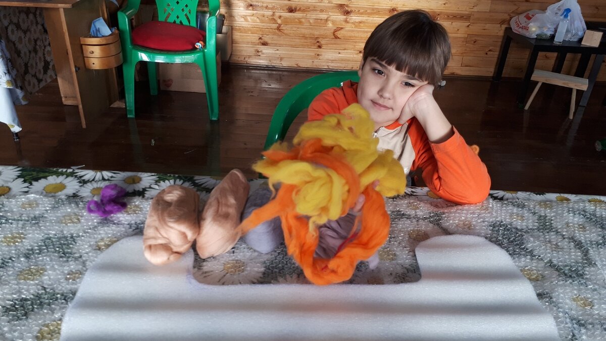 Как я говорил в начале, заготовку нужно разрезать, когда обваляем шерстью. Надо постараться сделать это ровно посередине.