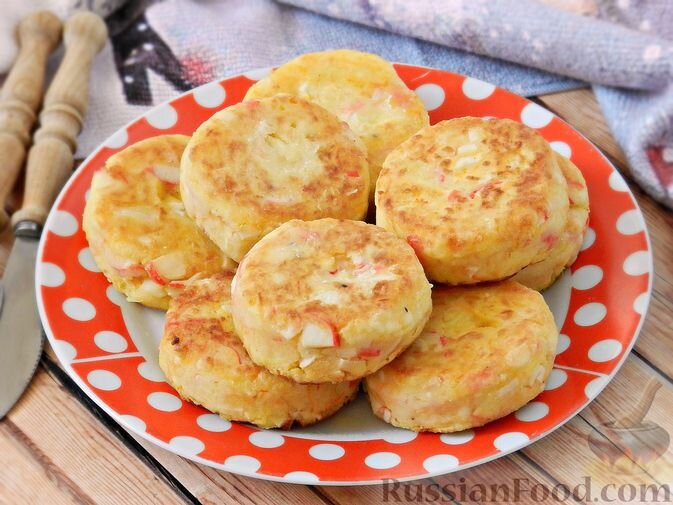 Необычные картофельные котлетки с крабовыми палочками, морковью и сыромготовятся просто и очень оригинально выглядят в разрезе. Добавление в картофельное пюре крабовых палочек, моркови и сыра делает котлеты вкуснее, ярче и интереснее.