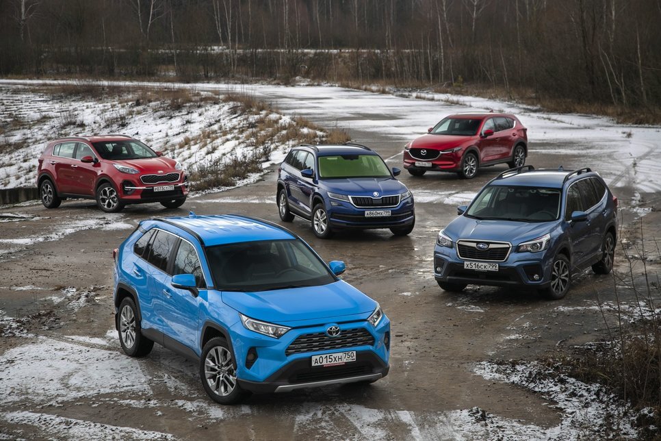 Toyota RAV4 против Kia Sportage, Mazda CX-5, Skoda Kodiaq и Subaru Forester.