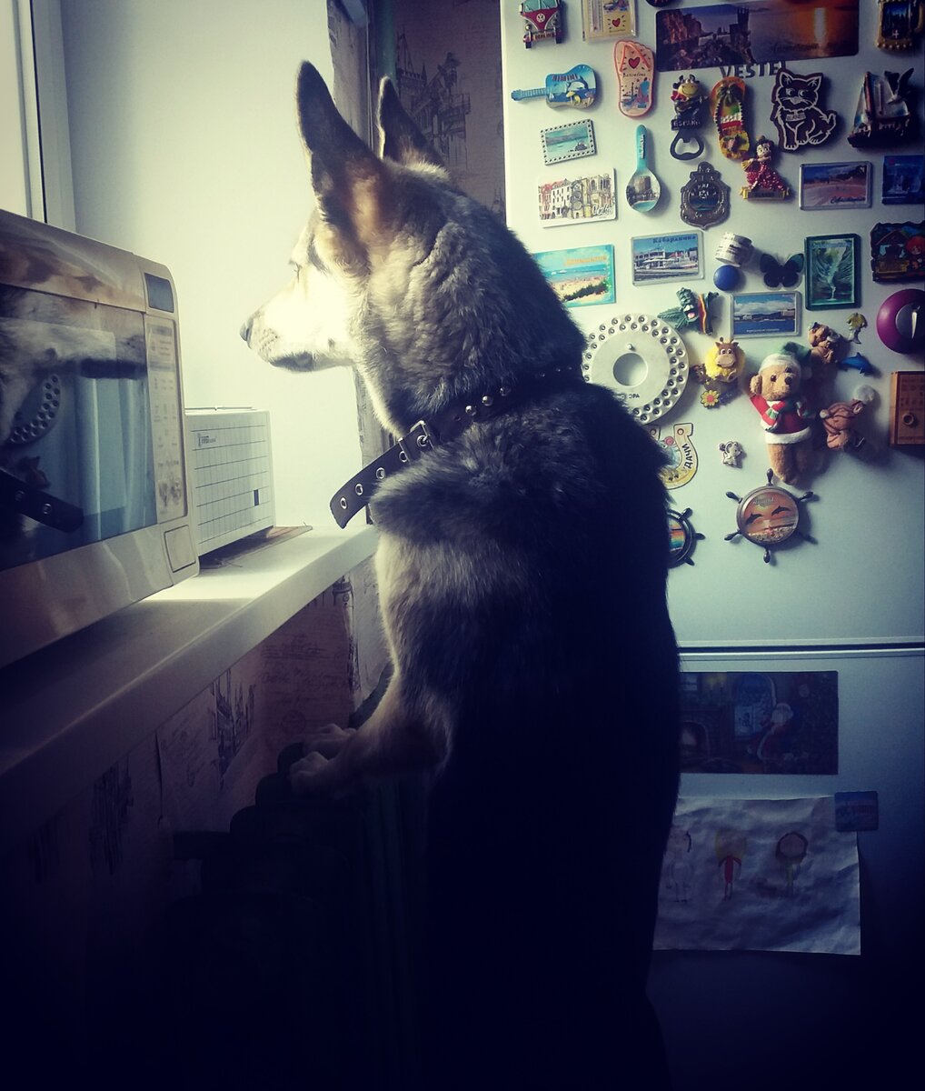 Дина росла и я не заметила, как она доросла до столешницы (если встать на задние лапы, конечно. Все таки она хачарка, а не догиня). Раньше я спокойно оставляла продукты на кухонных горизонтальных поверхностях. Например, чтоб горячее остыло, перед тем, как убрать в холодильник. Так было и в тот раз. Нажарив сковороду котлет, я сло