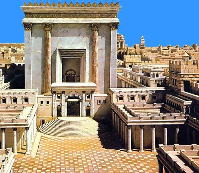 Первый Иерусалимский храм или Храм Соломона— еврейский храм в Иерусалиме. Создание центрального Храма в древнем Израиле олицетворяло объединение Израильского царства и могло произойти лишь во время упрочения этого единства. И действительно, согласно Библии, Храм был воздвигнут в период наивысшего проявления национального единства еврейского народа, в царствование Соломона. Соломону удалось осуществить план постройки грандиозного Храма, к которому устремлялись бы на поклонение евреи со всех концов Израиля. Библия повествует, что во всё время, пока евреи должны были воевать с соседними народами, Бог не хотел обитать в «Доме», а странствовал «в шатре и Скинии». Царь Давид завоевал столицу иевусеев Иерусалим и торжественно перенёс Ковчег Завета туда, где поместил его в специально предназначенную для него скинию и лично принёс в ней жертвы Богу. Иерусалим находился на территории между наделами колена Иуды и колена Вениамина. Перенеся Ковчег Завета — символ присутствия Бога — в город, не