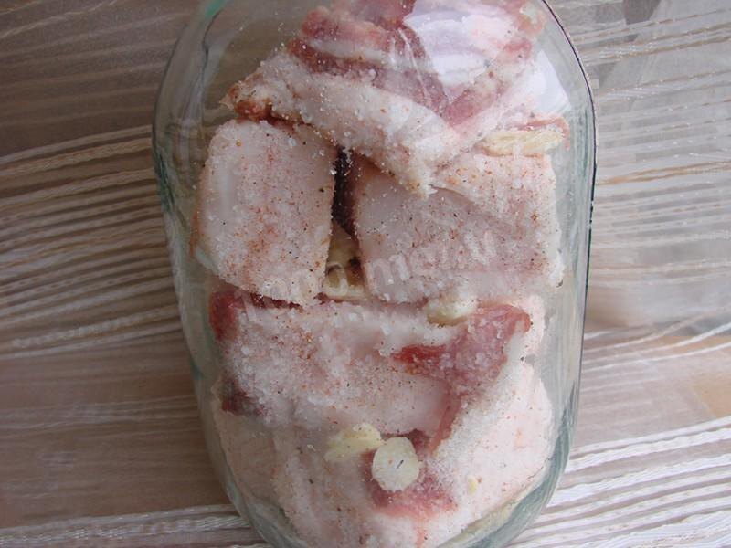 6. Затем отправляем банку с салом в холодильник на 4 дня.
