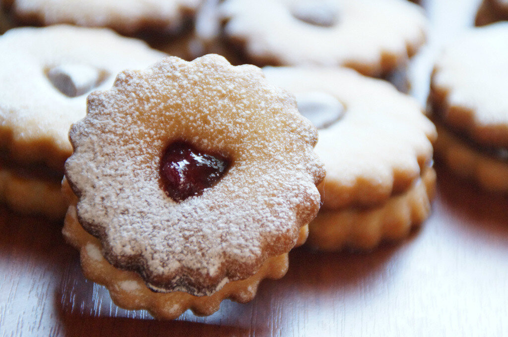 джем - для начинки. Взбиваем масло с яйцом и сахаром. Добавляем муку и замешиваем тесто. Заворачиваем его в пищевую пленку и убираем в холодильник минимум на 3 часа, можно дольше. Тесто, даже застывшее, очень послушное, с ним приятно работать. Если застыло сильно, разрежьте на кусочки и постепенно разминайте в руках. Раскатываем пласт толщиной 5 мм, формочкой вырезаем печеньки. Если вы хотите, чтоб у печенья было в
