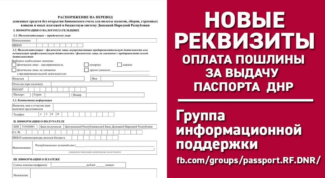 ВАЖНО! С 1-го января 2020 года изменились реквизиты миграционных служб ДНР и порядок их уплаты (Приказ Минфина №184). Теперь перед подачей документов на паспорт ДНР вы должны принести в ЦРБ распечатанный и заполненный бланк А4 «Распоряжение на перевод». 😱 Реквизитов на стендах ЦРБ больше нет. Жизнь простых людей резко усложнилась 😯😤: Сначала нужно где-то взять пустой бланк А4, который нужен ЦРБ -> Распечатать его -> Посетить Миграционку и сфотографировать новые реквизиты перед зданием (если никто их не сорвал в связи с острой личной необходимостью) -> Вернуться в банк, заполнить бланк А4 и оплатить госпошлину. Иногда между ЦРБ и Миграционкой – от 1-го до 3-х километров. 😔 И стоит это учесть…особенно инвалидам и пожилым людям. 👵👴 Ходить придется много…