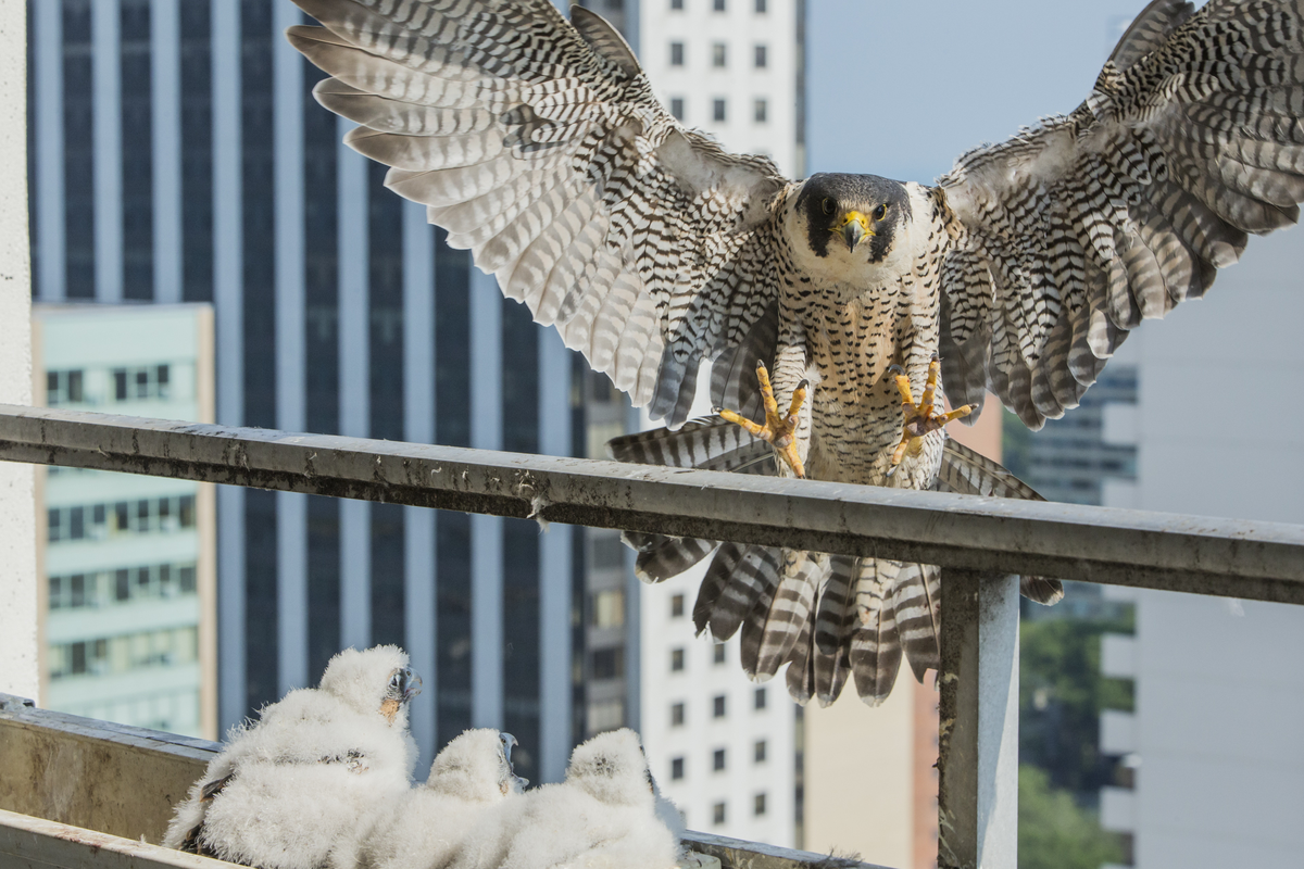 Сапсаны процветают в городских джунглях городов мира. Двадцать восемь этажей над Чикаго - это удивительная история одной особой пары неортодоксальных жителей, которые покорили сердца своих соседей своей семьей в цветочной коробке. Это серое утро в Чикаго и из озера Мичиган проникает мелкий туман. Двадцать восемь этажей вверх Дейси Арашиба неуклюже следит за ароматом кофе, и, налив себе чашку, он садится на свой диван для своего утреннего ритуала перед коробкой. Но это одна коробка, за которой мало кто будет иметь возможность наблюдать, потому что это коробка с цветами, свисающая с перил его балкона, и в ней сидит самое быстрое животное в мире. Сапсан, размышляющий над своими четырьмя птенцами. Довольно рутина пробуждения. Дейси шутит, что его ленивое садоводство на этот раз окупилось, сказав нам: «Ключ к хранению сапсанов, кажется, незапланированная оконная коробка». Он - любитель комиксов, в последние месяцы его аккаунты в социальных сетях привлекли достаточно аудитории, поскольку он