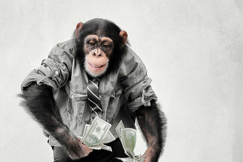 Деньги и обезьяны. Американские этологи провели эксперимент по ведению трудовых отношений в стае Капуцинов. Они придумали в вольере работу и универсальный эквивалент деньги. Работа состояла в том чтобы дернуть рычаг с усилием 8 кг, значительные усилия для некрупных обезьянок. Это для них настоящий мало приятная работа.