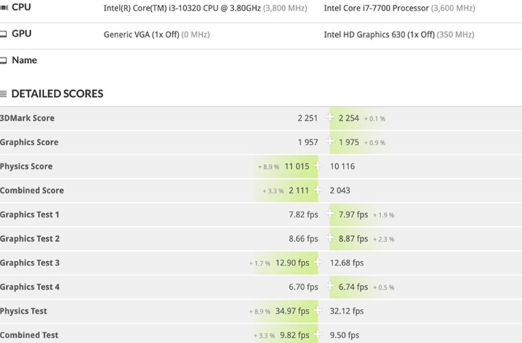 В интернете появились тесты i3-10320, который имеет: Эти характеристики, с учетом 14 нм техпроцесса, близки к i7-7700 с одном различием: у i7 частота на 100 МГц ниже. И как оказалось, i3 в тесте 3Dmark в среднем на 5-6% быстрее старого i7, и уж точно будет ощутимо дешевле.