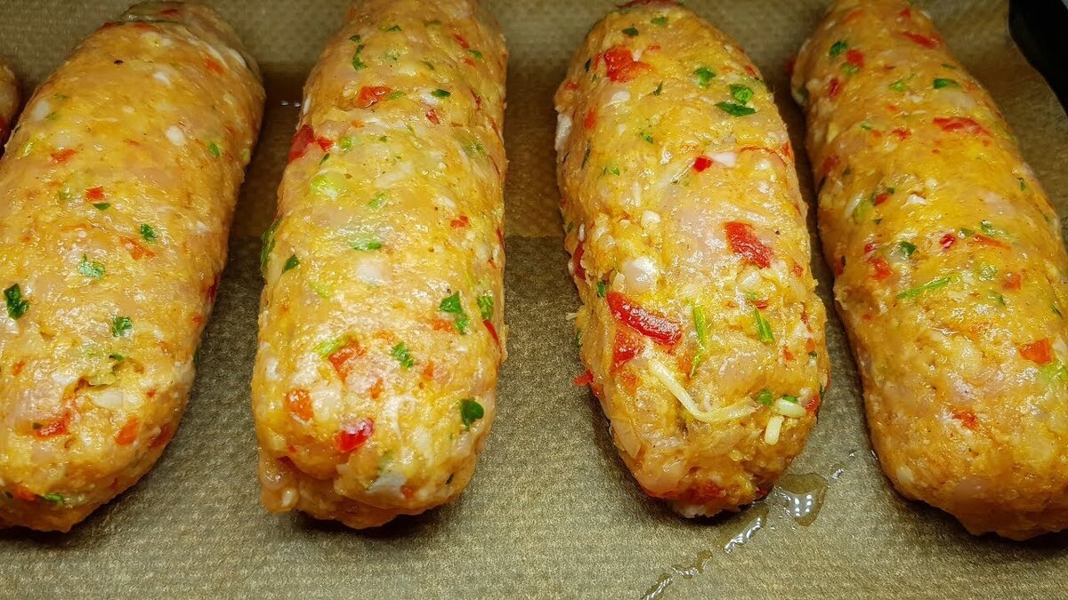 4. Противень застелить пергаментной бумагой. Выложить мясные "пальчики". Сверху слегка смазать растительным маслом. Это делается для румяной корочки. Отправляем в предварительно разогретую духовку до 180 градусов на 40-45 минут.