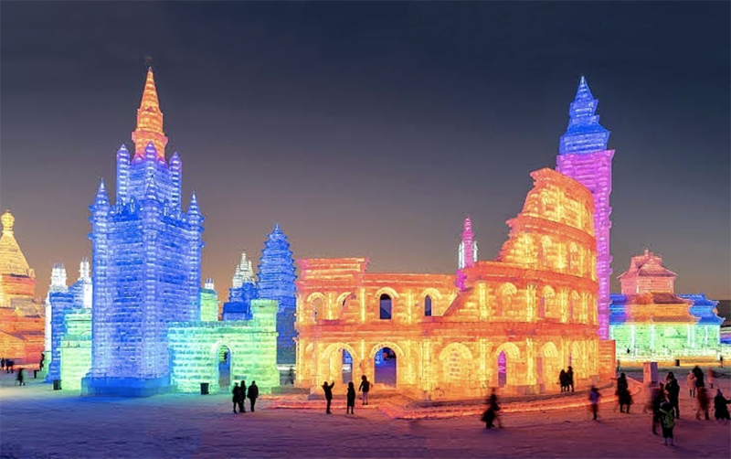 Каждую зиму в китайской провинции Хэйлунцзян проводится крупнейший в мире фестиваль скульптуры изо льда и снега. В этом году ледяной город площадью 600 квадратных метров был возведен за 15 дней и в строительстве его участвовали почти 10 000 рабочих. 170 000 кубометров льда было извлечено из близлежащей реки Сунхуа и вырезано скульпторами. Фестиваль привлекает посетителей со всего мира – несмотря на то, что температура иногда падает до -30С Первый фестиваль в Харбине был проведен еще в 1963 году, затем после длительного перерыва возобновился в 1985 году. Нынешний фестиваль 2020 года – 36-й. Фестиваль имеет конкурсный формат и в этом году скульптуры создавались в пяти номинациях: культура, туризм, спорт, мода и торговля. Гости фестиваля помимо любования снежными и ледяными скульптурами могут покататься на санках и коньках, поиграть в хоккей или футбол на льду, и даже принять участие в заплыве моржей. Также на Харбинском фестивале принято проводить снежные свадьбы. В этом году были з