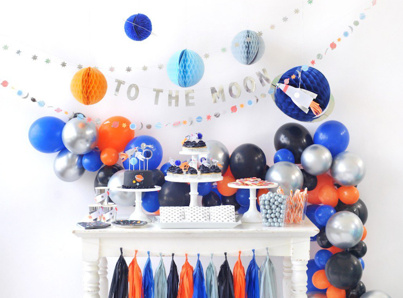Когда дело доходит до девчачьего дня рождения, то идей море: цветы, сказки, единороги и русалки. А что же придумать для мальчика? К счастью, у Meri Meri есть множество коллекций специально для мальчишек – осталось только продумать сладкий стол и дополнительный декор. Одна из классных новых коллекций - Space Party . И, в отличие от розовых фей, на такую вечеринку можно пригласить и мальчиков, и девочек. Мы просто в восторге от этого сверкающего серебром декора. Увлечения у малышей могут быть разные, но таинственный космос любят все! Наши партнеры Happy Wish Company поделились замечательными фотографиями с космического дня рождения. Малыш Джордан не побоялся открытого космоса и разослал друзьям приглашения в путешествие. Посмотрите, какие они милые! Такую вечеринку точно будут ждать с нетерпением. Декораторы выбрали довольно смелую и контрастную цветовую гамму: серебряный, черный, оранжевый, синий и голубой! Но, тем не менее, все эти цвета отлично сочетаются друг с другом. Их уравновеши