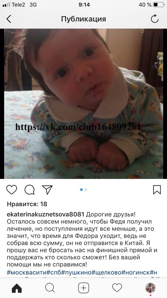 Это семья аферистов!!!!Собирает деньги на лечение ребёнка в Китае ... хорошо сборы идут, можно и расслабиться ...погулять по ресторанам, деньги же халявные, как она на видео и говорит, что они с подругой « под этим делом» сейчас напишут бизнес план. Какой бизнес план? Как собрать побольше халявных денег и гульнуть?! Самый прикол в том, что сборы больше похожи на « сборы на отпуск для всей семьи» так они с собой ещё везут бабушку То есть закрыть сбор в 49 тысяч они не могут, а свозить бабушку в китай, куда билет стоит 23 тысячи в одну сторону, не считая проживания и питание- на это деньги есть! Но вы деньги шлите, а то лечить ребенке не на что!!!!