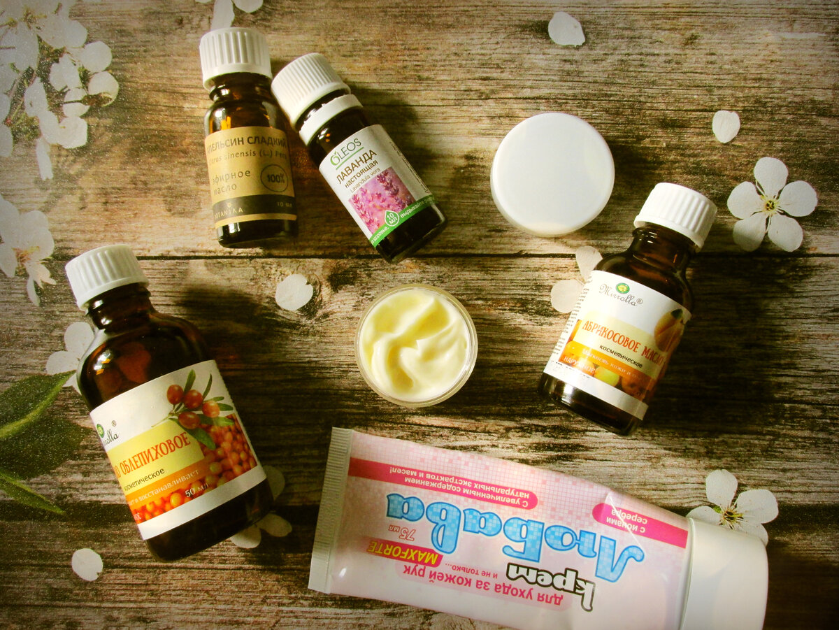 На этот раз я взяла облепиховое и абрикосовое, которые порой наношу на кожу и в чистом виде. В качестве основы продолжаю пользоваться кремом Любава, он, кстати, подорожал, если раньше я его покупала за 38 рублей, то теперь цена выросла до 50. И дизайн у него обновился.