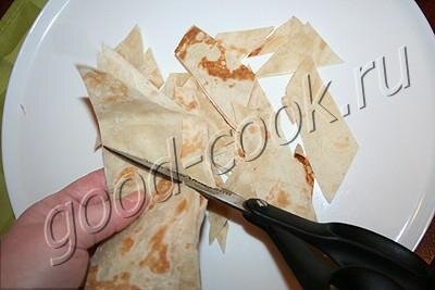 Чипсы офигительные. Хрустящие, солоновато-островато-масляные. Вкууууусныееее.... СОСТАВ 1 тонкий лаваш (размером 50х70см), ~1/4 ч ложки соли, 1,5~2 ст ложки растительного масла, любые специи, приправы, зелень, чеснок по вкусу посмотреть калорийность» Лаваш настричь ножницами на квадраты или ромбы. Сложить в большую ёмкость (кастрюлю, миску).