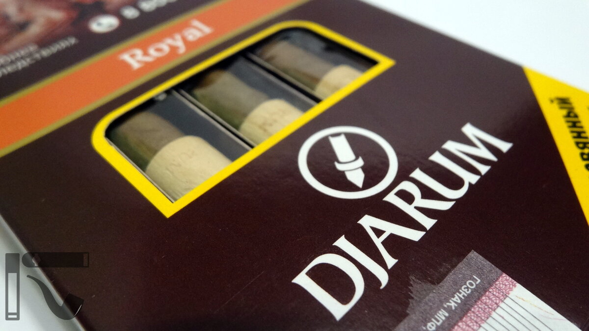 На данный момент сигариллы Djarum представлены всего тремя сортами и все они ароматизированы: Ivory - с ароматом ванили, Ruby - с ароматом вишни и Royal - с ароматом рома. И именно Royal сегодня будем пробовать.
