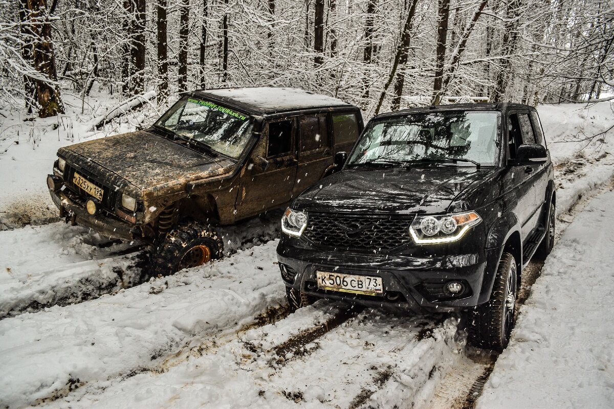 Парни из Трофи - тур 4х4 регулярно катают по местным маршрутам всех желающих на серьезно подготовленных Jeep Cherokee, но мы решили попытать счастья на самом обычном, абсолютно стандартном УАЗ Патриот с автоматической коробкой передач, обутом в зимние не шипованные покрышки Nokian Hakkapeliita R2 SUV, да еще на 18-х дисках. Заводская комплектация с "автоматом" продается с осени, мы взяли ее на длительный тест, чтобы испытать в реальных условиях эксплуатации.