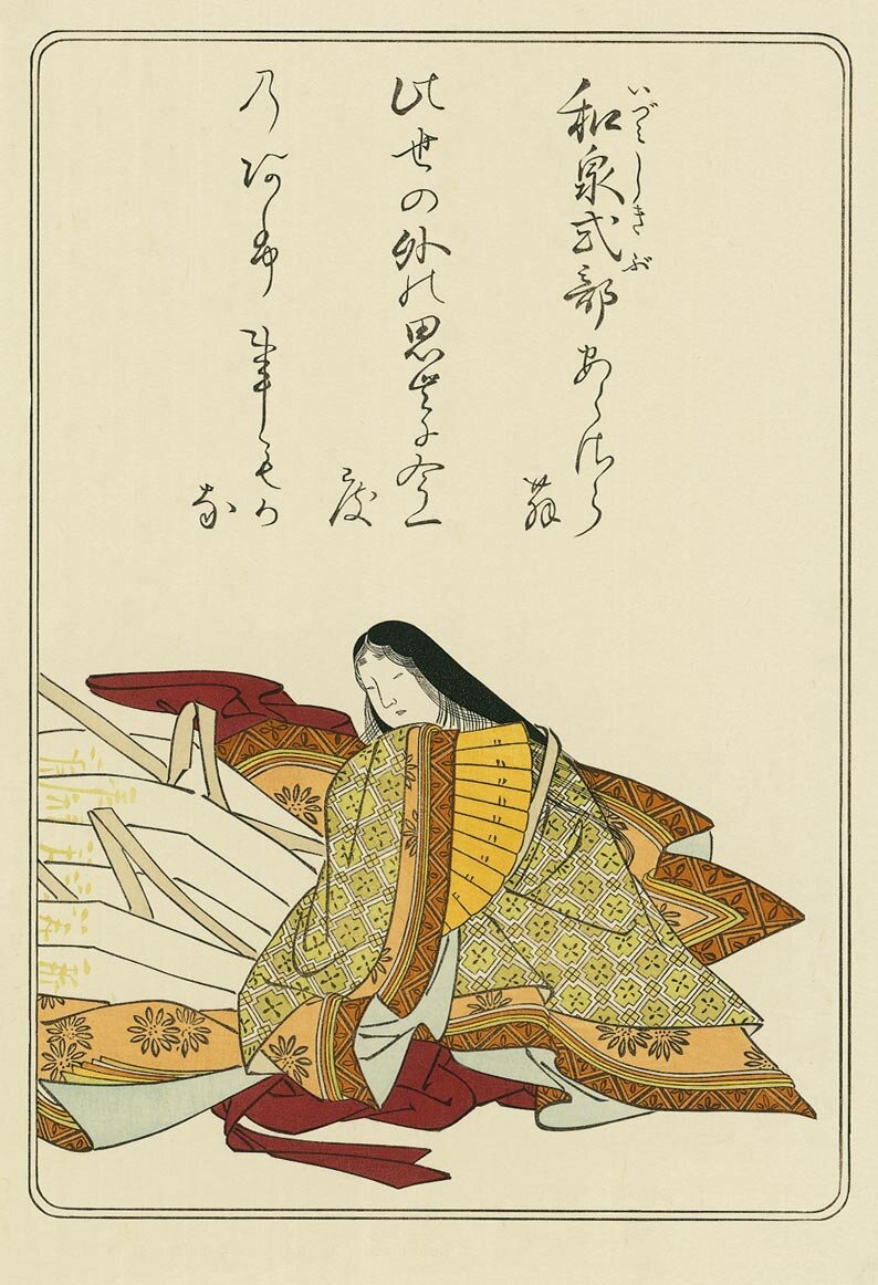 Она хотела уйти в монастырь. От неё отреклись родители. Молва винила её в смерти любовников. Сегодня я расскажу историю жизни легендарной японской поэтессы Идзуми-Сикибу (родилась примерно в 978 году, умерла около 1036 года). По отцу Идзуми принадлежала к старинному роду Оэ, хранившему традиции высокой образованности. В 19 лет девушку выдали замуж за близкого приятеля отца – Татибана-но Митисада. Вскоре он получил назначение правителем в провинцию Идзуми. Отсюда – прозвище («сикибу» номинальное звание придворной дамы невысокого ранга). Через год родилась «маленькая Сикибу», Косикибу-но найси. Уже тогда чувственная Идзуми славилась своим ветреным нравом, так, во вступлении к одному из стихотворений говорится: «Когда женщина, о которой говорили, что будто она со многими была связана, родила ребёнка, многие спрашивали её: «И кто же, интересно, отец?..» Несчастливый брак распался через несколько лет. Идзуми вступила в любовный союз с принцем Тамэтака, третьим сыном государя. По некоторым д