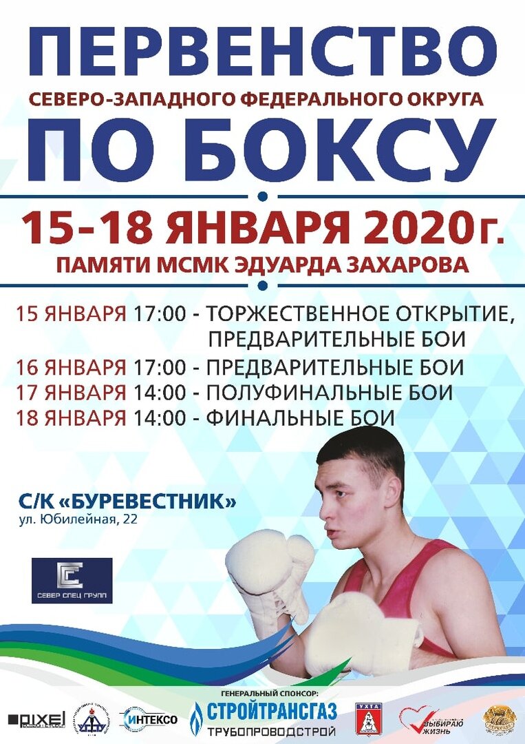 15 января в г. Ухта стартует Первенство СЗФО среди юниоров и юниорок 17-18 лет (2002-2003 г.р.) памяти МСМК Эдуарда Захарова. Сегодня состоялась мандатная комиссия, процедура взвешивания и жеребьёвка. По итогам жеребьёвки в первый день предварительных боев на ринг выйдут четыре представителя сборной команды Архангельской области: - в категории до 56 кг. Мусонов Евгений (Архангельская обл) vs Васин Артур (Псковская обл); - в категории до 60 кг. Семченко Евгений (Архангельская обл) vs Назаретян Юрий (Карелия); - в категории до 64 кг. Погосян Евгений (Архангельская обл) vs Марковский Дмитрий (Мурманская обл); - в категории до 75 кг. Зеленков Владимир (Архангельская обл) vs Арестенко Максим (Коми); Желаем нашим спортсменам успехов в предстоящих поединках! Еськина Лада не проведя ни одного боя становится победителем первенства СЗФО по боксу в категории до 69 килограмм, к сожалению в ее весе не нашлось соперников. онлайн трансляцию смотрите на сайте (начало 17.00) http://boxing-fba.